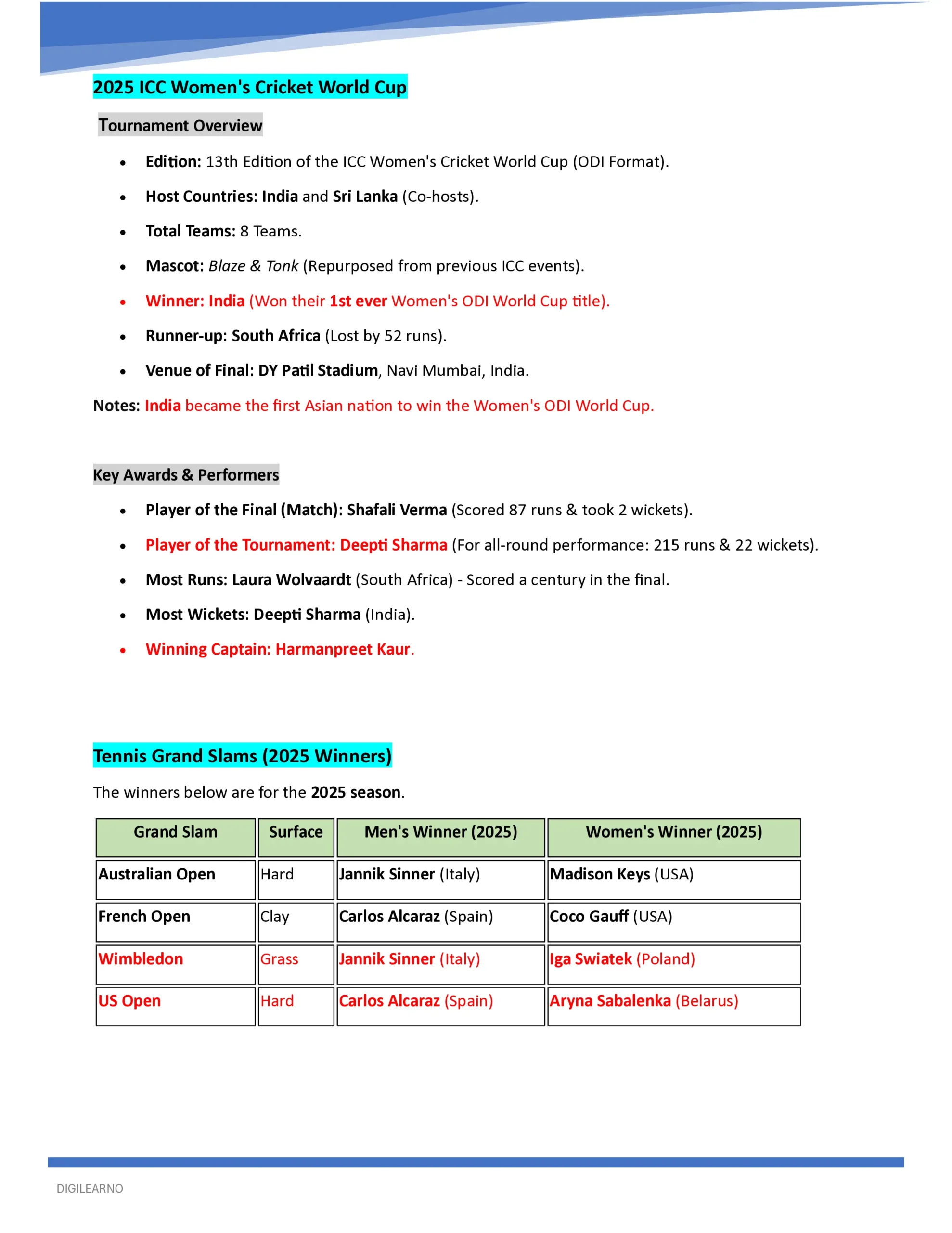 One Year Current Affairs Notes, carefully compiled for competitive exam aspirants.