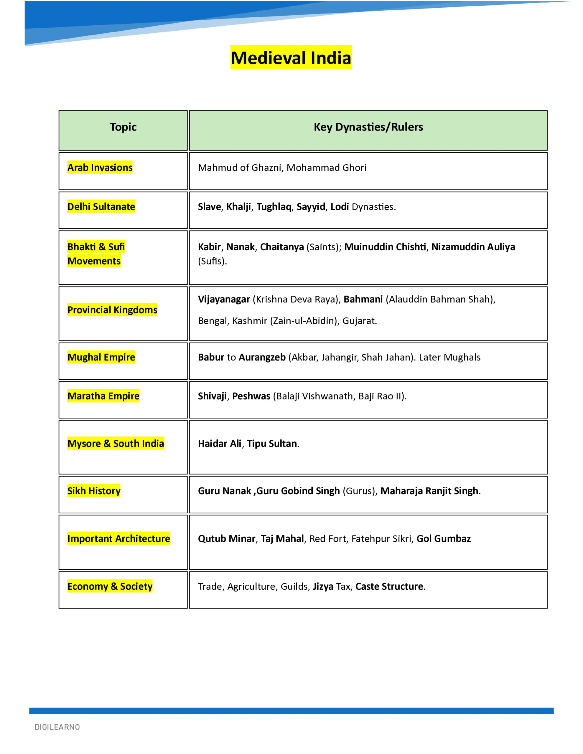 ✅ Clear explanations of Delhi Sultanate, Mughal Empire, Vijayanagara & Bahmani Kingdoms, Rajputs, Marathas, and regional dynasties.