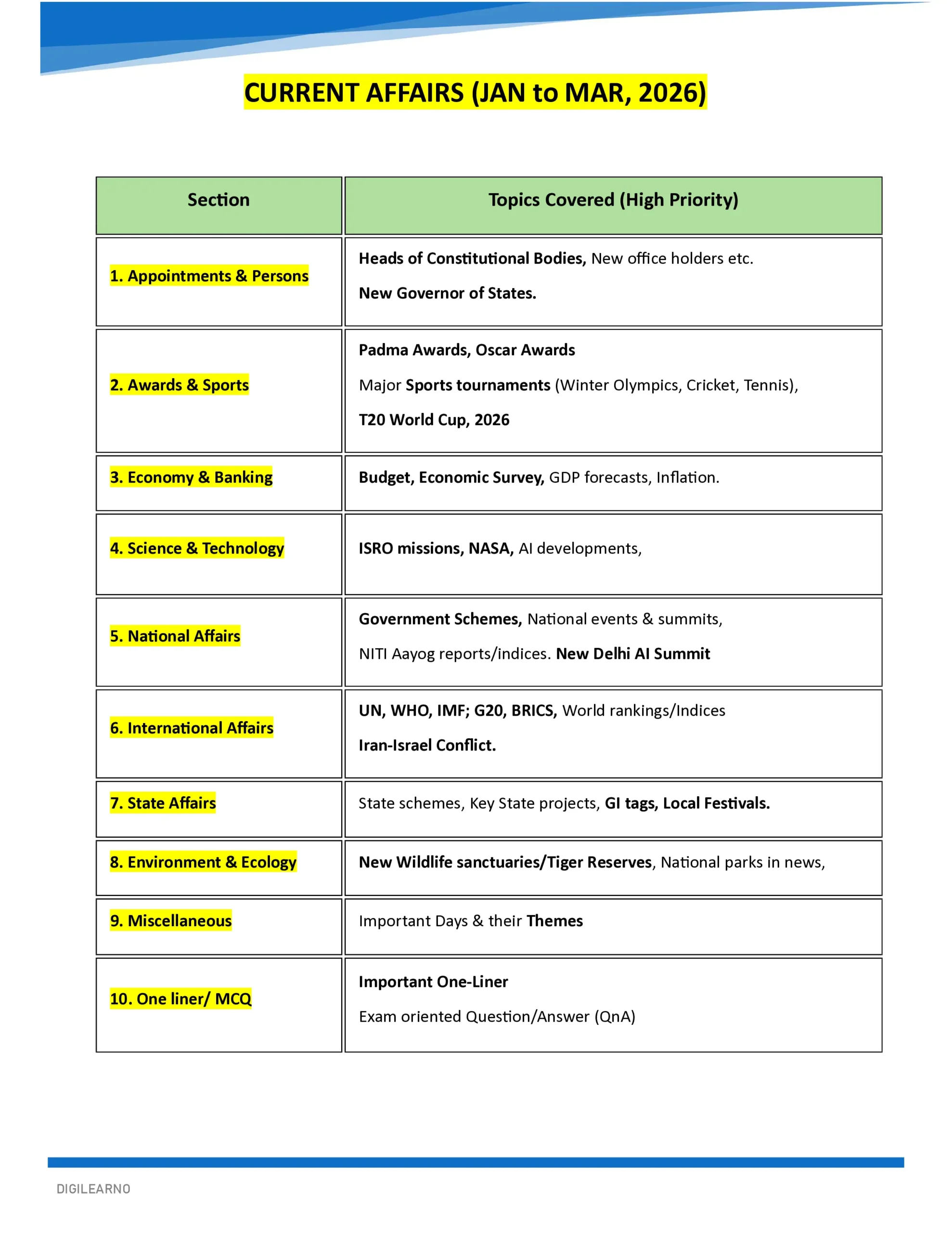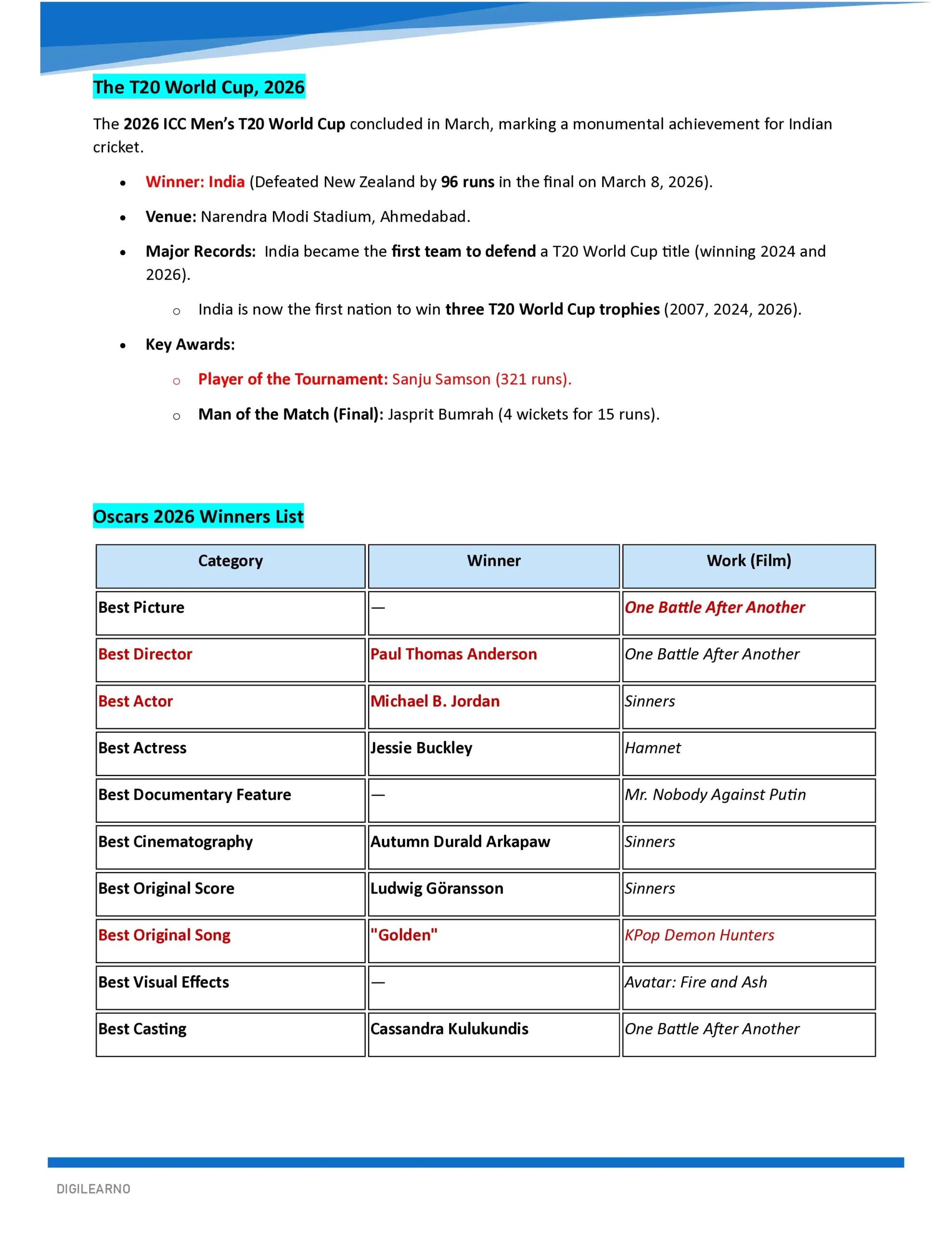 Monthly Current Affairs Notes, carefully compiled for competitive exam aspirants.