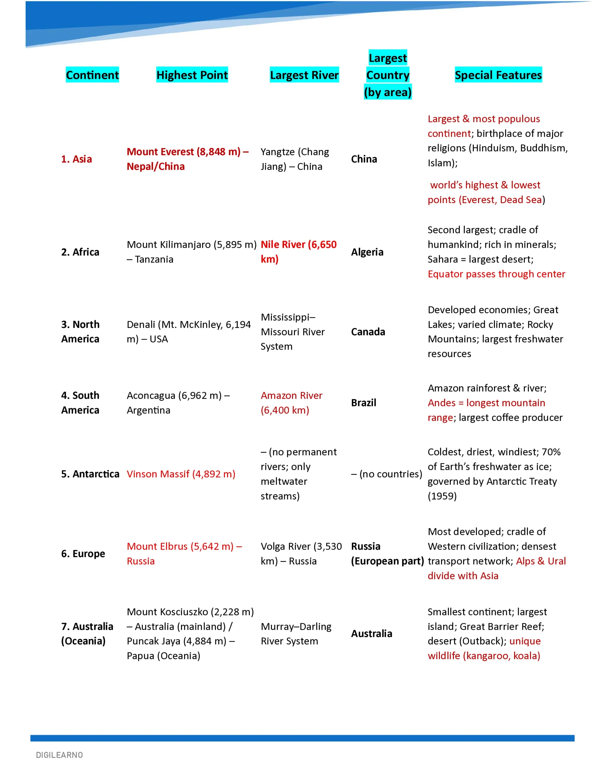 ✅ One-liner fact sheets for MCQs (landform types, climate patterns, geological processes)
