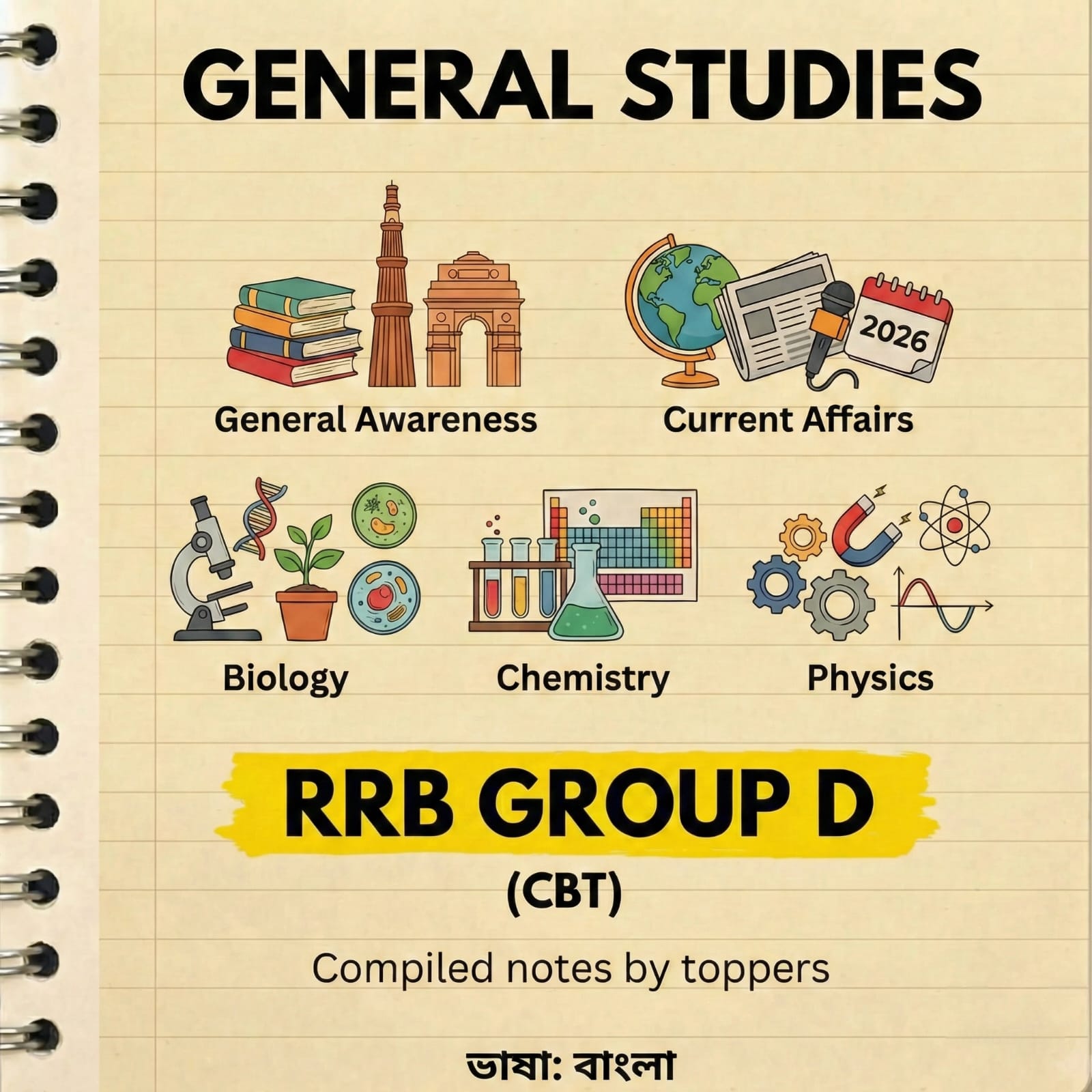 ✅ Our Railway Group D Notes cover the COMPLETE GENERAL STUDIES SYLLABUS, including: