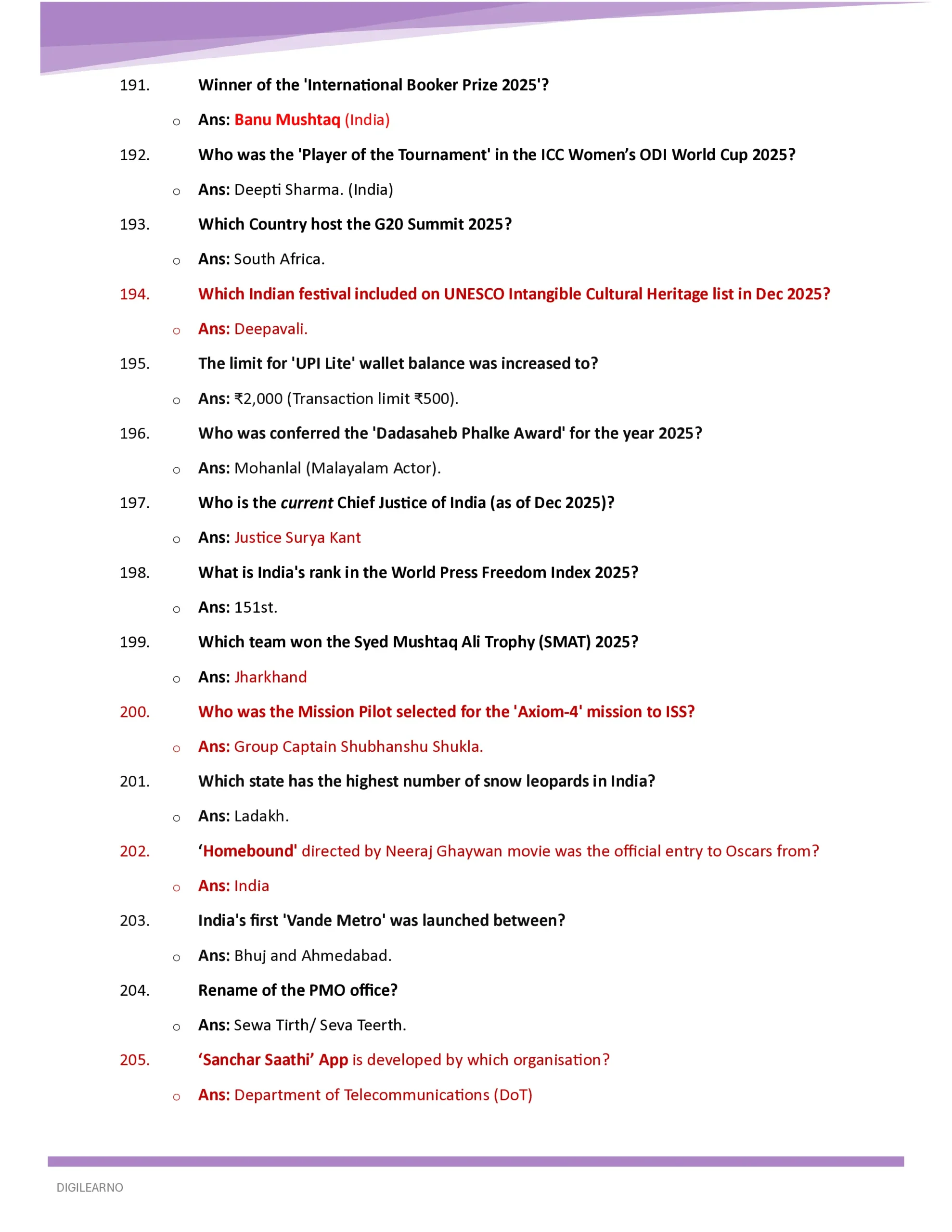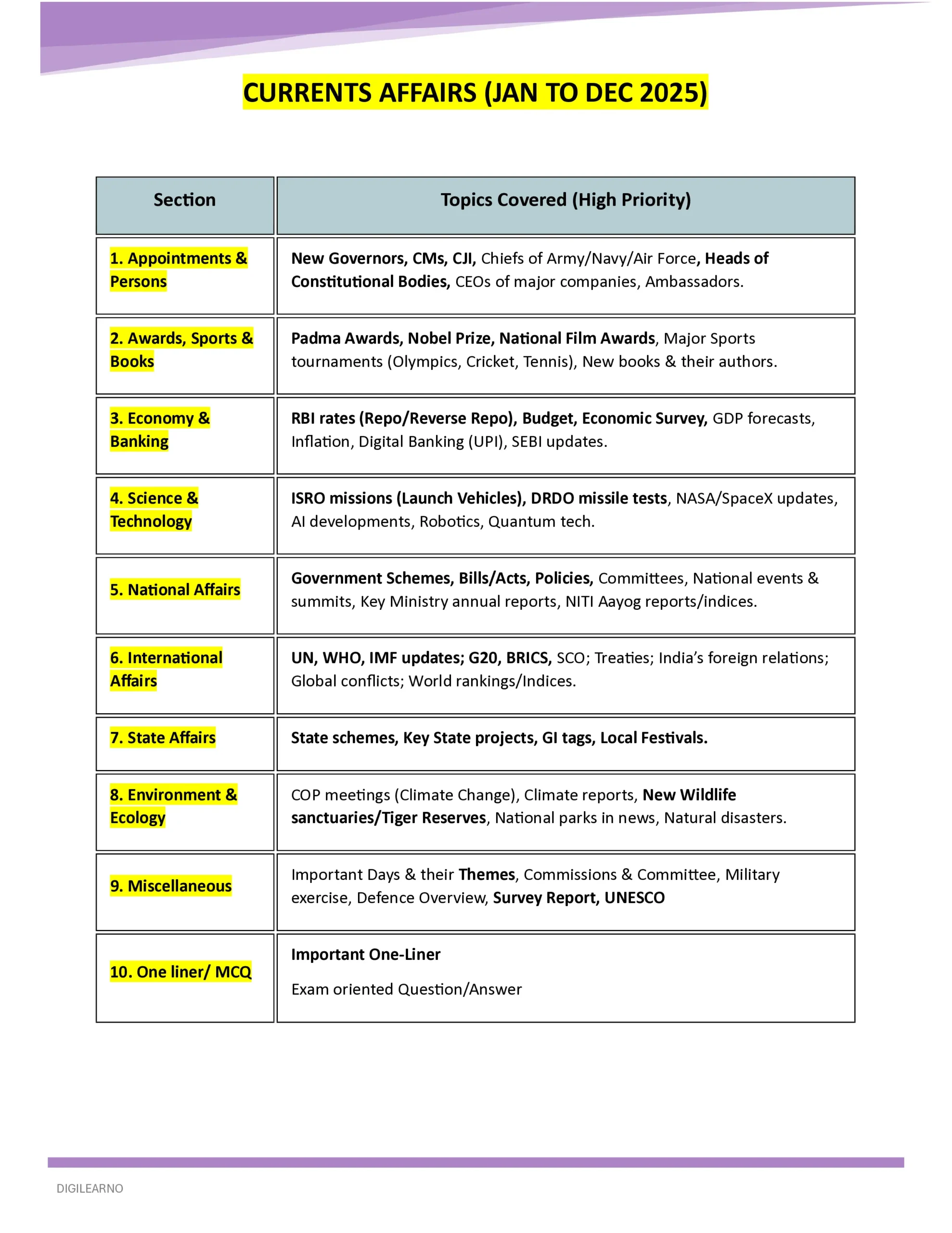 - One Year Current Affairs – January to December 2025