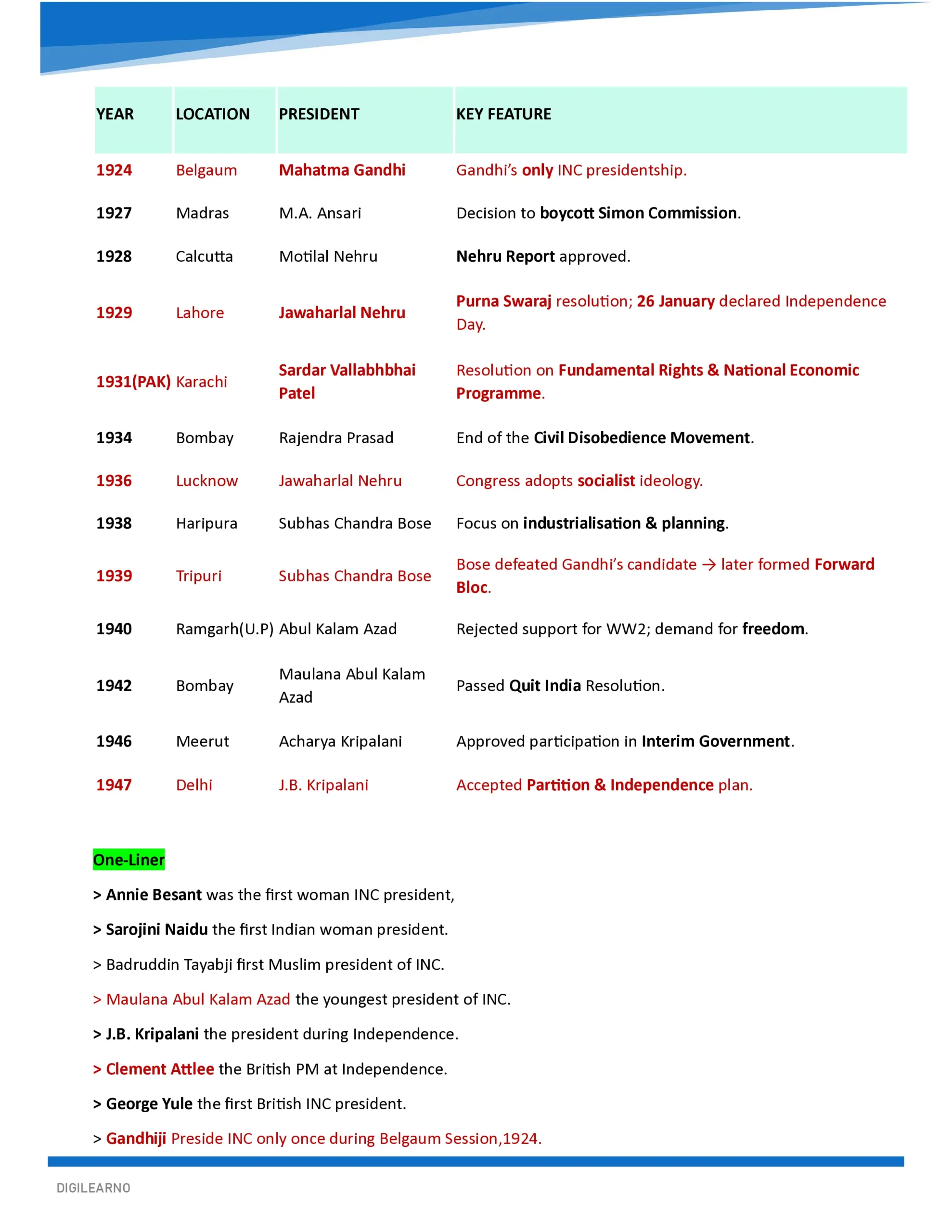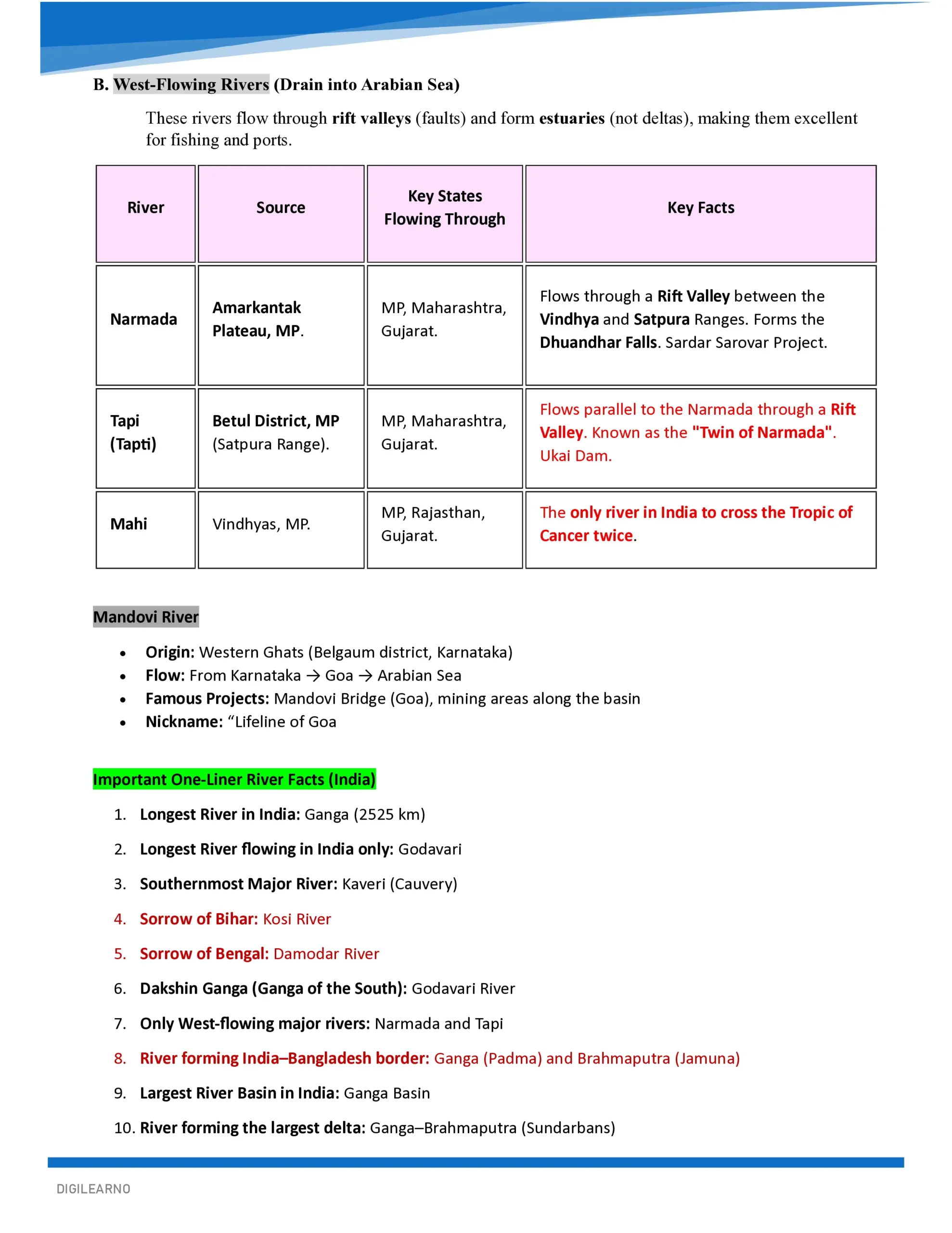 Perfect for quick revision-tables, one-liners, and easy memorization